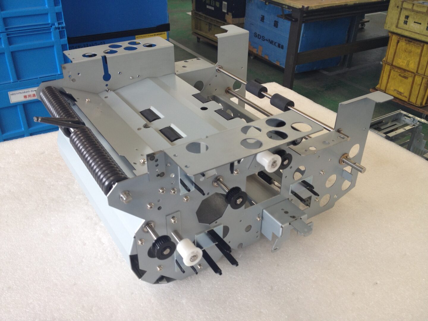 OCR筐体の製作は、紙にキズを付けず、文字を読み取るため、精密な加工が必要となっています。当社は、部品のバリ取りと細かい曲げ加工を行い、キズのないよう製作しております。